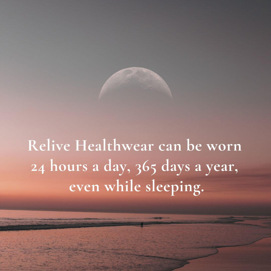 The print is on the outside of the garment, providing a soft and comfortable feel against the skin. Wearing both a Relive shirt and undergarments further enhances the benefits compared to wearing just the Relive Shirt.